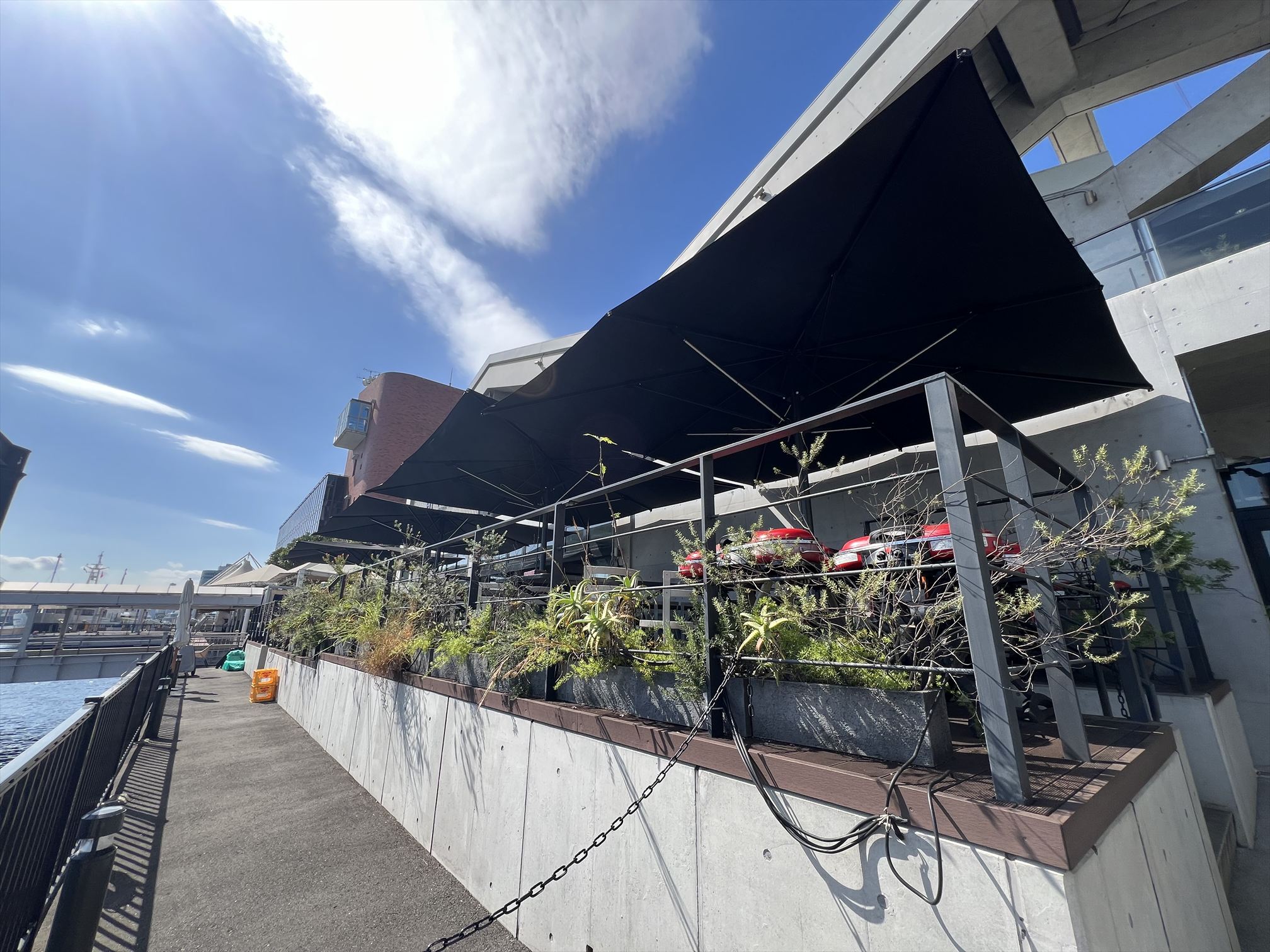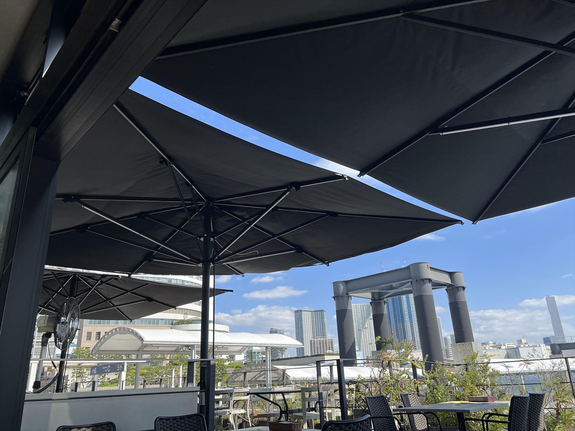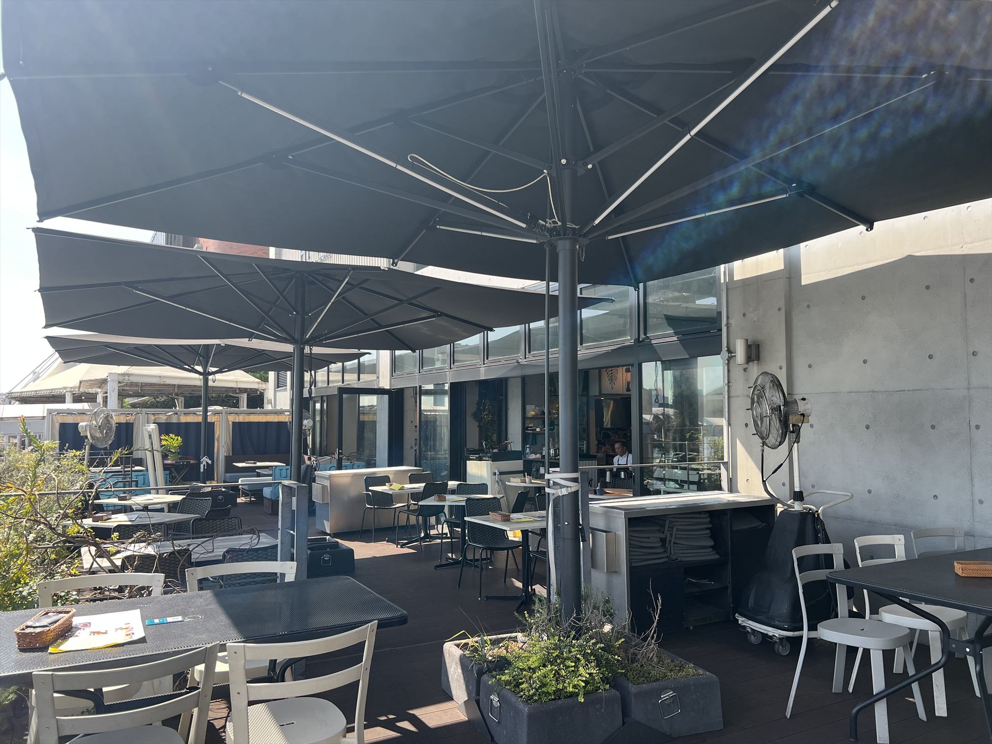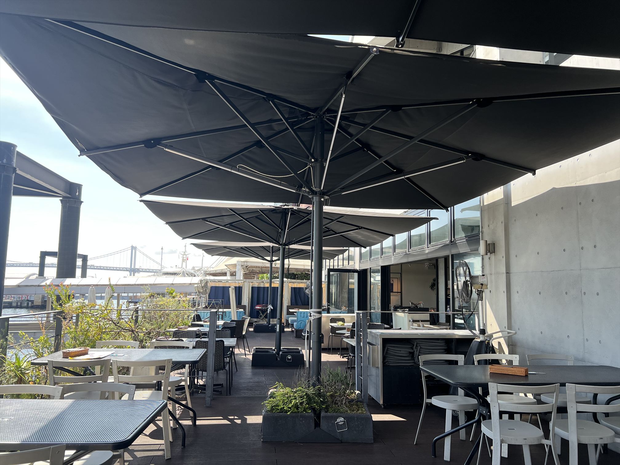 絶景のロケーションをお愉しみいただけます。レストランから続く見晴らしのよいガーデンに大型パラソルを採用いただいております。