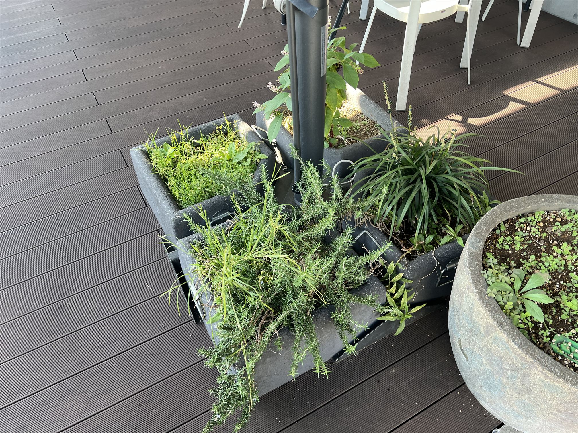 桜島の絶景を見ながら、パラソルの下で過ごす心地よい空間が広がります。