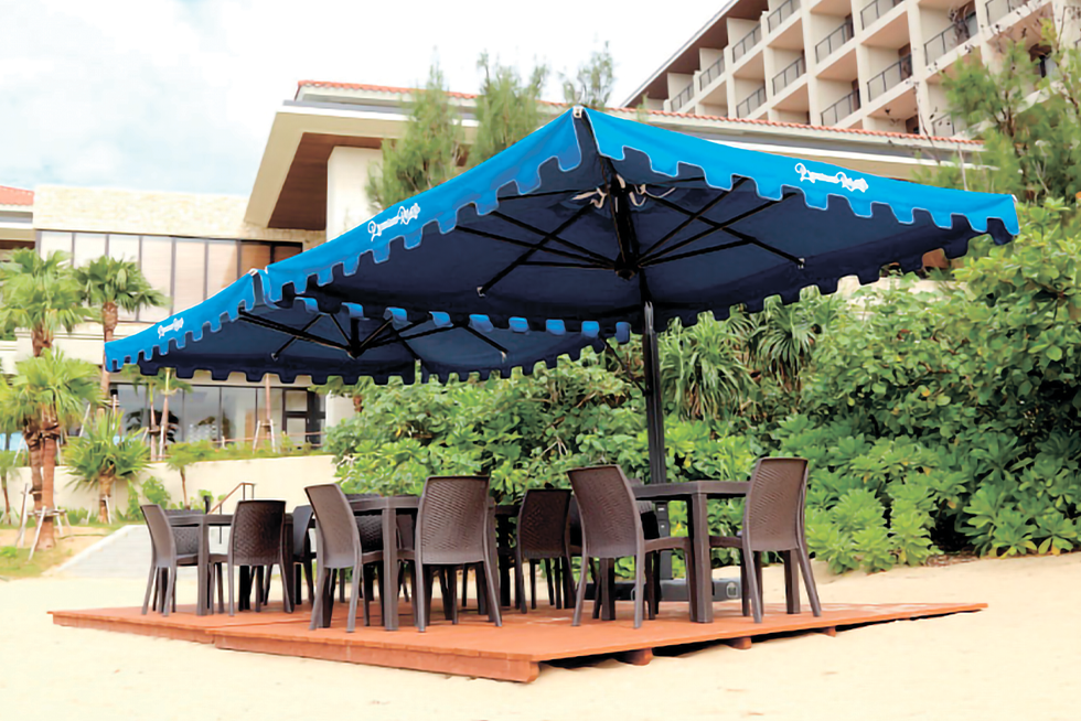 レストランから続く見晴らしのよいガーデンに大型パラソルを採用いただいております。