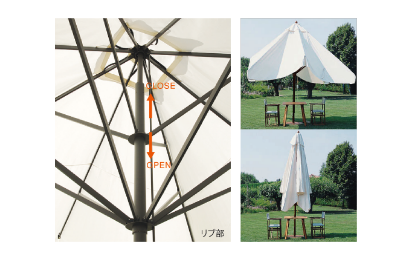 台風・強風時など、パラソルを差したまま倒すことが可能